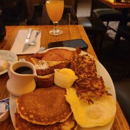 Champagne brunch $18.99 was a good value. $5 to split the dish if u don't buy anything else. Coffee was $4? But they brought a small pitcher so that was great. The other breakfast items on the menu were a bit pricy.